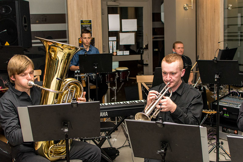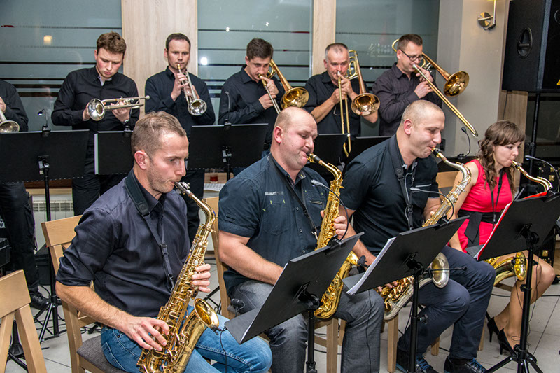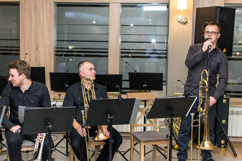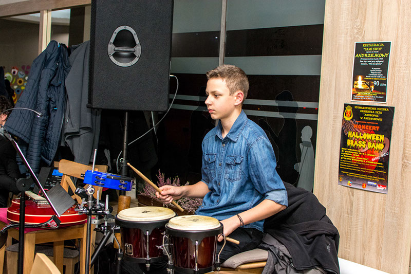 Zebrani w restauracji Andrychowianie mogli kolejny raz raczyć się muzyką na najwyższym poziomie dzięki projektowi,który organizowało nasze stowarzysznie w ramach realizacji zadania publicznego dla Gminy Andrychów. Tym razem na zakończenie warsztów wystąpiła formacja HALLOWEEN BRASS BAND, która zaprezentowała się w formie kwintetu blaszanego oraz klasycznego big bandu.