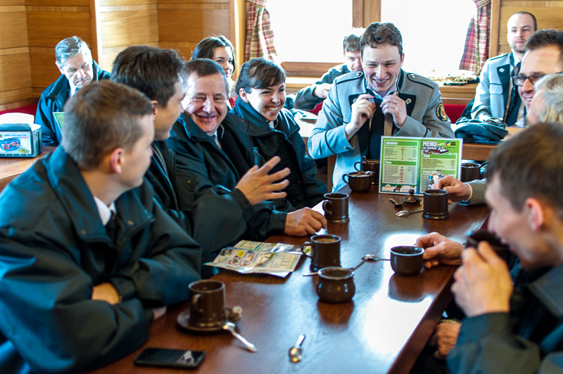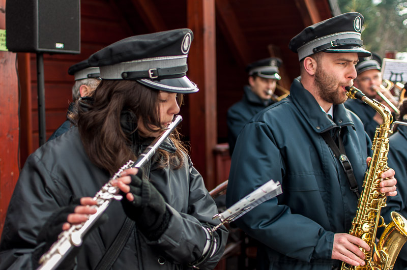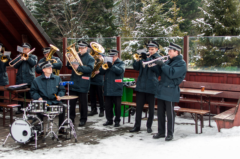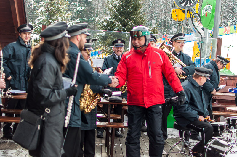 Na tarasie kawiarnianym u podnóża stoku narciarskiego nasza orkiestra dała wspaniały dwugodzinny koncert podzielony na dwa "wejścia". Specjalnym wykonaniem marsza Podhalańskiego uczciliśmy honorowy, inauguracyjny przejazd samego Burmistrza.