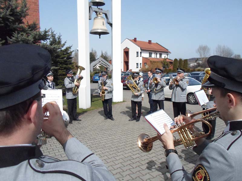 Po uroczystej eucharystii daliśmy kilkunastominutowy koncert dla licznie zgromadzonej pod kościołem publiczności, a pod plebanią dla księdza proboszcza wykonaliśmy specjalnie zadedykowanego marsza oraz tradycyjne "sto lat".