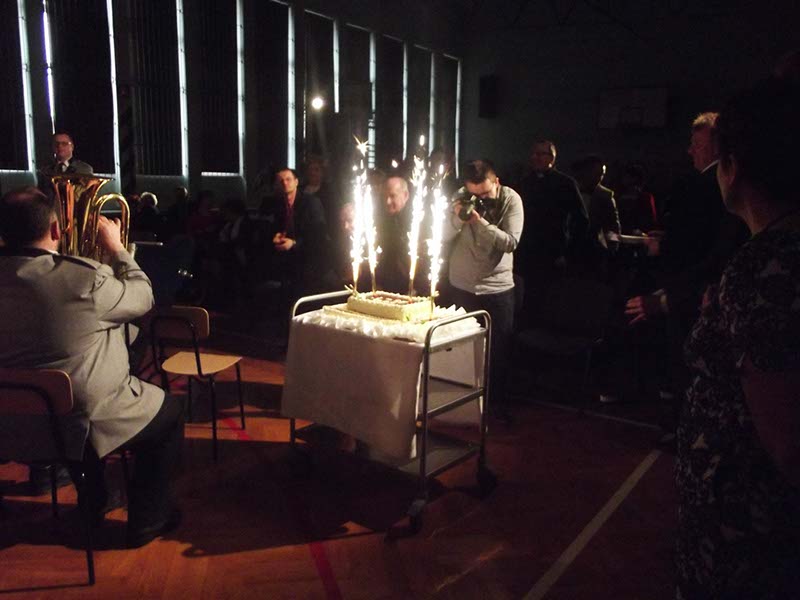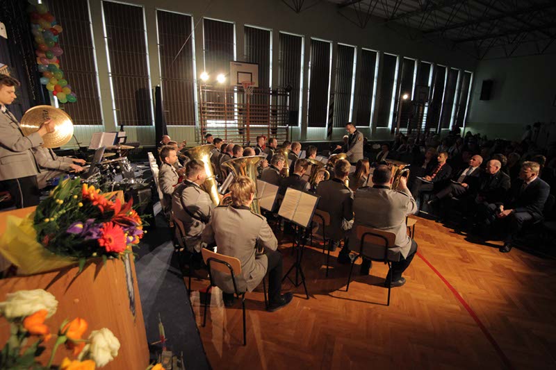 Uroczystość rozpoczęła się od uformowania kolumny, która przy naszym akompaniamencie przemaszrowała do kościoła św. Stanisława na osiedlu, gdzie odbyła się msza święta. Podczas mszy graliśmy tradycyjne pięśni liturgiczne.