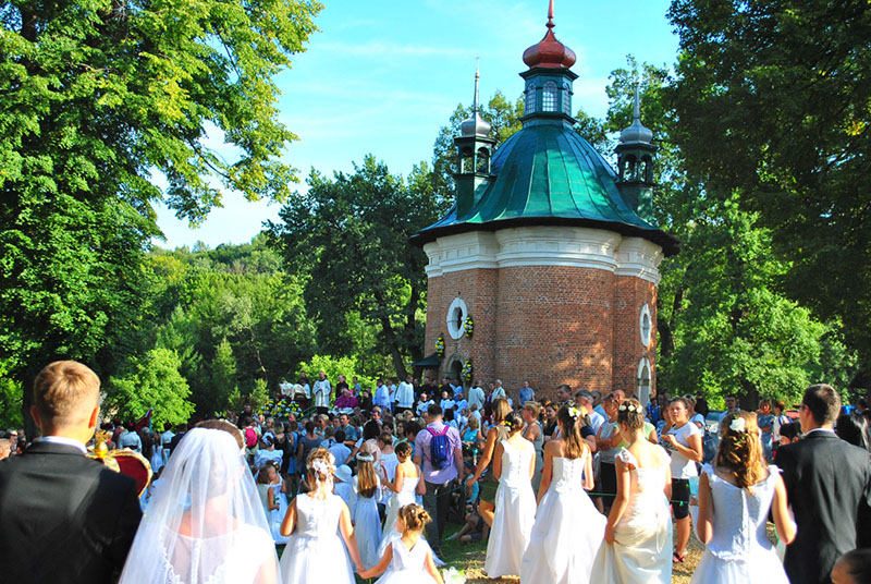 W dniu 18.08.2017 r. jak co roku braliśmy udział w procesji "Zaśnięcia Najświętszej Maryi Panny", która jest jedną z najbardziej widowiskowych i oryginalnych procesji w kościele katolickim. W Kalwarii Zebrzydowskiej kilkadziesiąt asyst przy wtórze orkiestr oraz rzesze pątników prowadzą figurę Maryi w zdobnej trumnie do kościoła Grobu Matki Bożej.