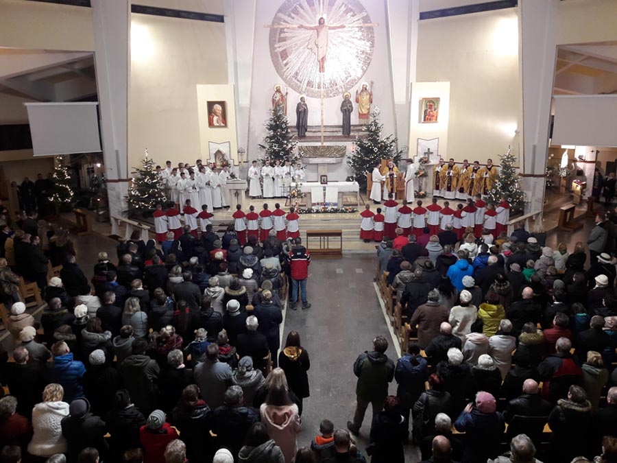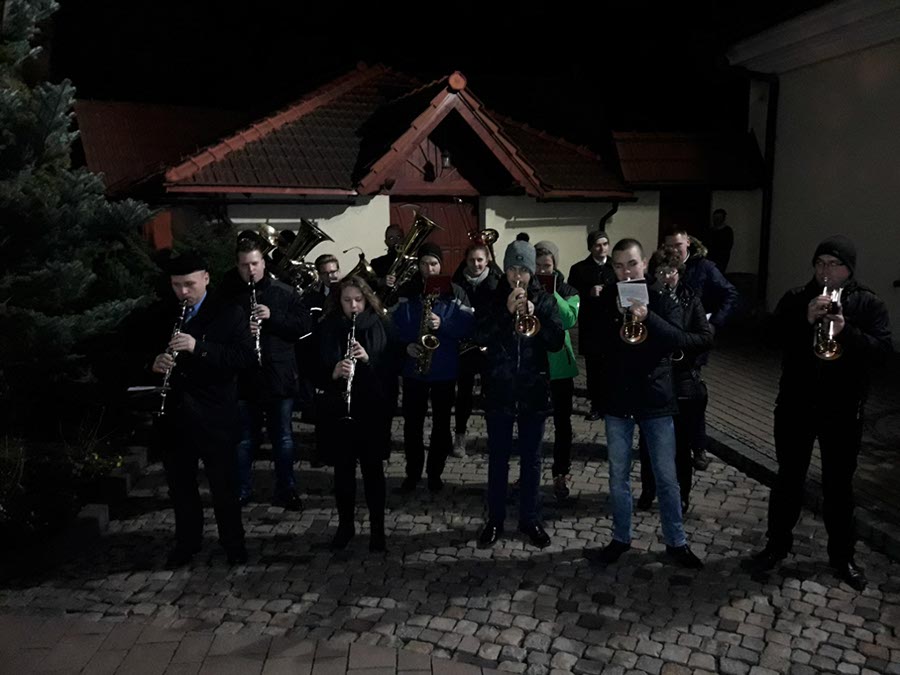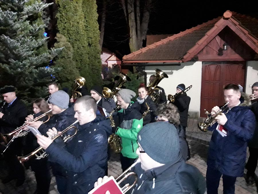 W nocy z 24 na 25 grudnia 2017r. nasza orkiestra miała zaszczyt uświetnić swą grą dwie uroczystości: Pasterkę w parafii p.w. Św. Stanisława B.M. na osiedlu oraz kolędowała podczas uroczystych życzeń, które składali sobie parafianie parafii św. Macieja po Pasterce w tamtejszej parafii.