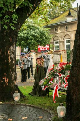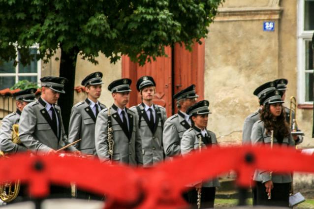 Orkiestra w swych pięknych strojach przywitała zbierające się poczty sztandarowe i delegacje kilkoma marszami. Następnie wykonała Mazurek Dąbrowskiego, po którym przemówienie okolicznościowe wygłosił Pan Przewodniczący Rady Miejskiej Roman Babski.