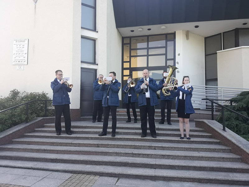 Ze względu na sytuację wywołaną korona wirusem udział naszej orkiestry w obchodach tej wyjątkowej rocznicy, musiał być bardzo ograniczony – do składu kameralnego zaledwie kilkuosobowego.