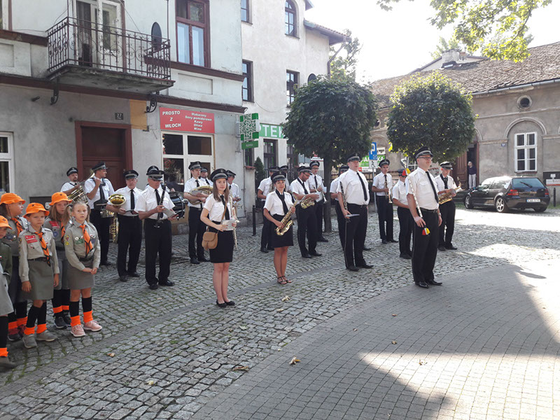 W dniu 1 września 2019 r. nasza orkiestra uświetniła swą grą obchody 80 rocznicy napaści wojsk hitlerowskich Niemiec na Polskę i tym samym rocznicę wybuchu II wojny światowej, które odbyły się przy pomniku "Poległym w Walkach o Wolną i Niepodległą Polskę" znajdującym się na skwerze nieopodal Urzędu Miejskiego.